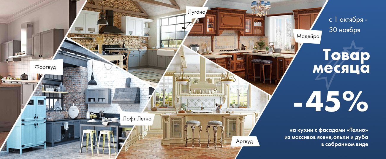 Фабрика ЗОВ проводит акцию «Товар месяца» с 15.010.2018 по 30.11.2018 года, и предоставляет скидку -45% на кухни с фасадами: