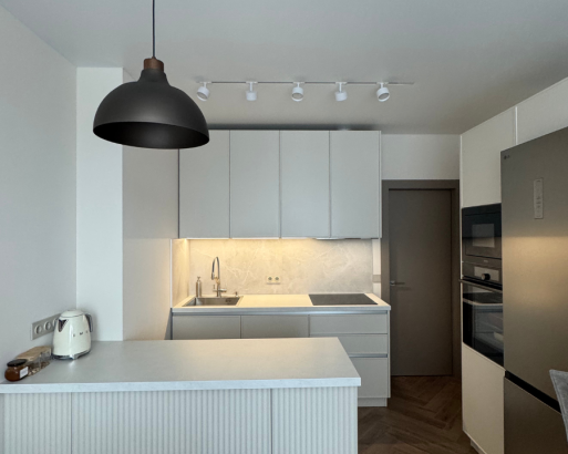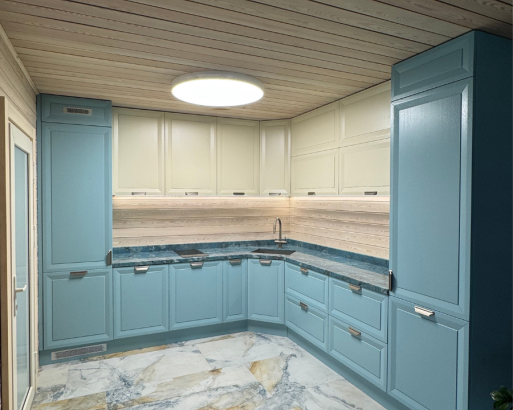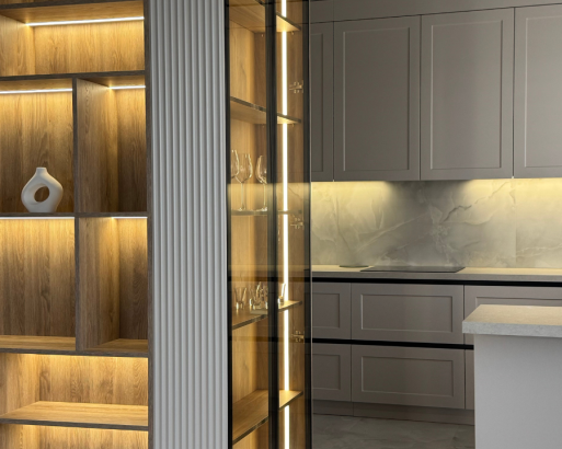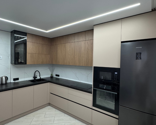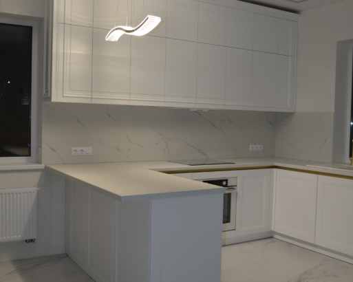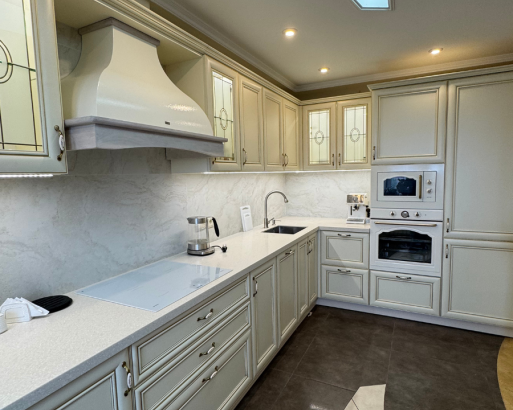 Кухня в стиле неоклассика с встроенной техникой в Москве