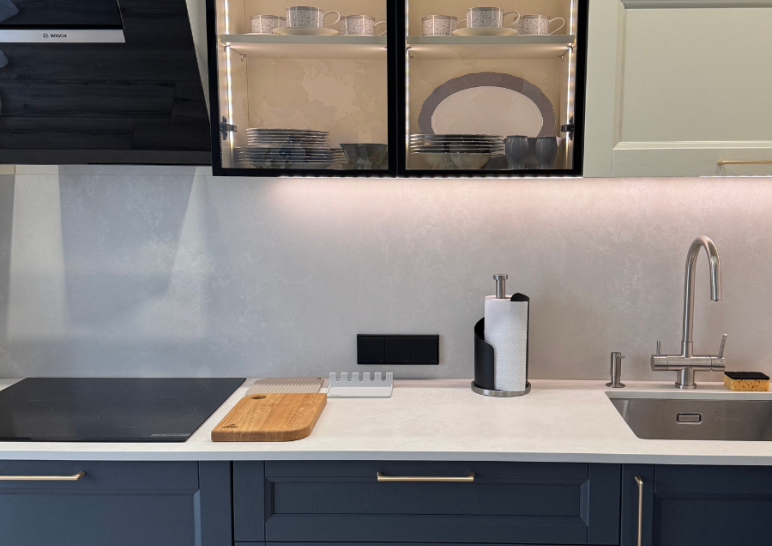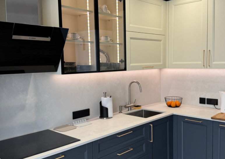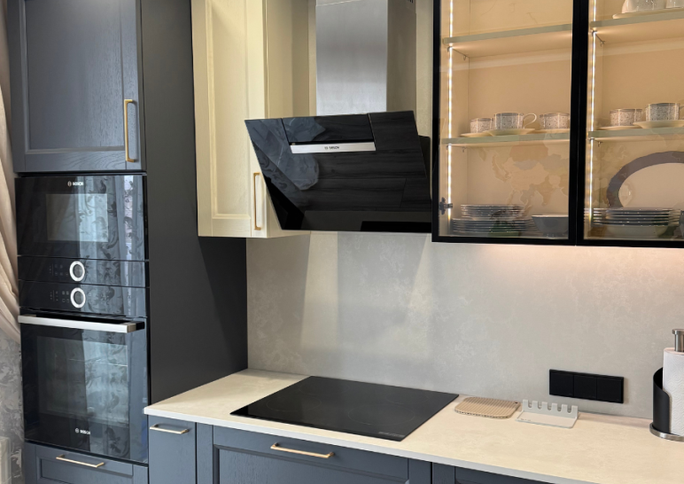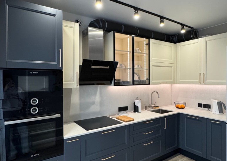 Кухня в стиле неоклассика с встроенной техникой в Москве